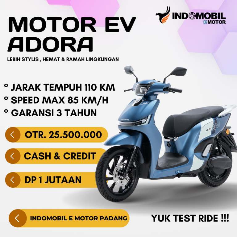 Adora Basic hadir di Padang seperti angin pagi yang menyapu Pantai Air Manis—tenang, bersih, dan penuh harapan. Motor listrik ini diciptakan untuk keseharian masyarakat kota pesisir: menyusuri jalanan datar, melintasi pasar, hingga pulang senja dengan latar langit jingga. Dengan teknologi listrik yang efisien dan fitur modern yang praktis, Adora Basic menjadi sahabat setia bagi mereka yang menginginkan perjalanan hening, hemat, dan selaras dengan alam Padang yang terbuka dan bersahaja.