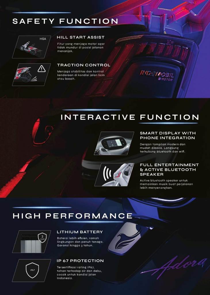 Adora Livery adalah wajah seni di antara lalu lintas kota. Ia melaju membawa warna, seolah meminjam keindahan laut dan langit Padang untuk dibalutkan ke tubuhnya. Di jalan-jalan utama kota, Adora Livery tampil sebagai simbol gaya dan kepercayaan diri, menyatukan desain yang berkarakter dengan teknologi ramah lingkungan. Motor ini bukan sekadar alat transportasi, melainkan pernyataan: bahwa berkendara bisa tetap anggun tanpa meninggalkan kepedulian pada udara dan ruang hidup bersama.