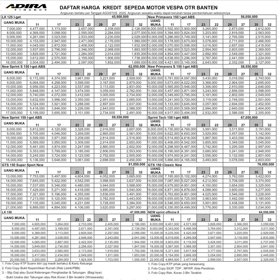 • Tanyakan Jika Anda Ingin Membeli Motor Vespa Secara Kredit Tentang Leasing Rekanan Motor Vespa Terbaik, Info Simulasi Dan Konsultasi Kredit, Sesuaikan TDP Dan Angsuran Sesuai Dengan kemampuan Anda Atau Pilih Paket Kredit Murah Dan Angsuran Ringan Yang Sesuai Dengan Penghasilan Anda, Dapatkan Juga Info Tentang Tingkat Suku Bunga, Tenor Atau Jangka Waktu Kredit Anda.