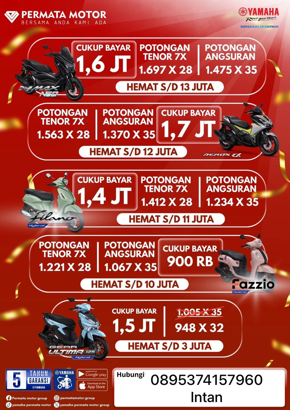 Kontak Sales Marketing Di Dealer Motor Yamaha Indramayu Untuk Informasi Alamat Showroom, Harga Terbaru, Promo, Paket Kredit, Diskon, Cashback, Simulasi Kredit Dan Test Drive Motor Yamaha. Produk Yamaha Terdiri Dari Motor All New Yamaha Nmax 250, Nmax Turbo, Nmax 155, Aerox 155, Lexi 155, Grand Filano, Fazzio, Freego 125, Gear 125, X-Ride, Mio M3 125, Fino 125, XSR 155, Vixion 155, R15, R25, MT 15, MT 25, WR 155 R, YZ 125 X, YZ 250 X, YZ 250 F, YZ 250 FX, MX King 150, Jupiter Z1, Vega Force. Tersedia Promo DP Kredit Murah dan Cicilan Ringan, Proses Cepat Atau Disesuaikan Dengan Kemampuan Anda. Hubungi Sales Marketing Kami Segera Untuk Mendapatkan Pelayanan Terbaik dan Kunjungi Alamat Showroom (Dealer) Kami Atau Jika Anda Sibuk Kami Bersedia Berkunjung Ke / Di Tempat Anda. Menerima Tukar Tambah Motor Seken / Bekas, Motor Bekas Anda Juga Bisa Dijadiin DP / Uang Muka Motor Baru (New) Yamaha. Jika Motor Anda Mengalami Kerusakan Atau Ingin Service Silahkan Bawa Ke Bengkel Resmi Kami. Dapatkan Info Promo Terbaru Yamaha Indramayu Setiap Bulan Januari Febuari Maret April Mei Juni Juli Agustus September Oktober November Desember Setiap Tahun 2024 2025 2026.